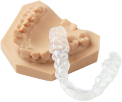 Aus den Datensätzen werden im Dentallabor die Modelle mit dentalen Hochleistungsdrucker gefertigt. Im Anschluss werdend die Modelle ausgearbeitet und die Alignerschienen auf diesen Modellen one by one Tiefgezogen. Im Anschluss erfolgt die Kontrolle und die Ausarbeitung der Alignerschiene durch den Labormitarbeiter. Hier wird besonderen Wert auf freigeschliffenen Papillen gelegt. Sobald der Alignersatz fertig ist, wird er verpackt und verschickt.