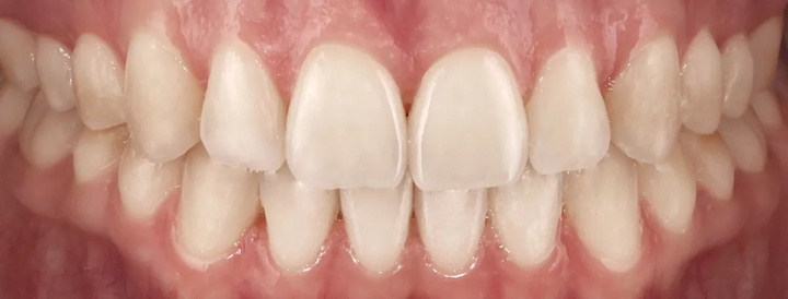 Die Patientin kam mit einem offenen Biß und den damit verbundnen Probleme beim Abbeißen. Außerdem hatte sie regelmäßig Spannungskopfschmerzen. Behandelt wurde Sie mit Ceraligner der 2rd Generation. Dieser Fall war ein “komplett” Fall und es wurden 16 Schienenpaare benötigt. Somit ergab sich eine Behandlungszeit von 16 Wochen, also ca. 4 Monate. Behandelt wurden nicht nur die Frontzähne, sondern auch die Seitenzähne wurden in Richtung Wange gestellt um ein volleres Lächeln zu erzielen.
